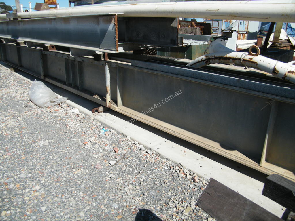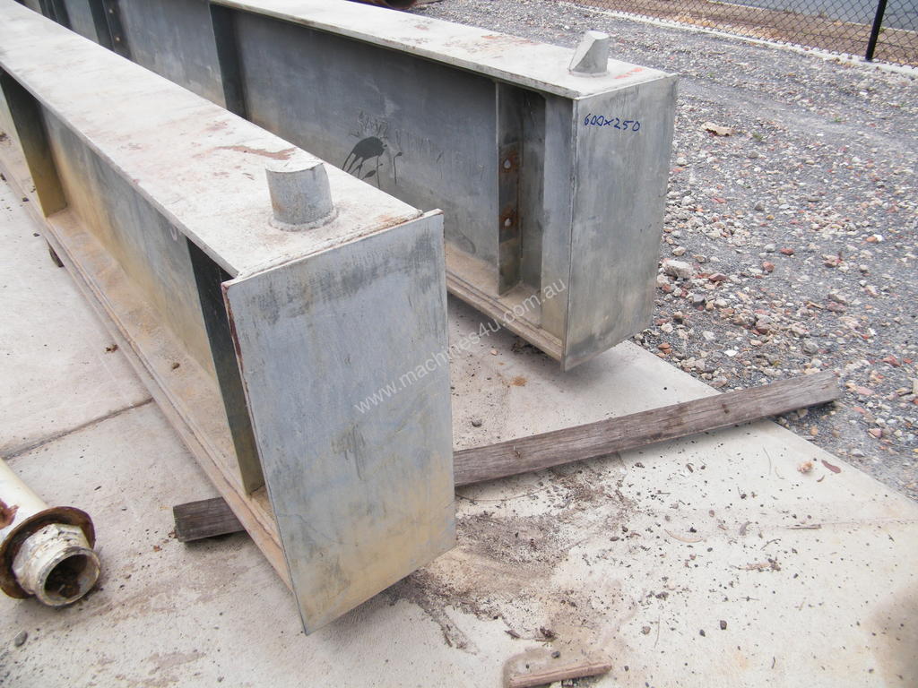 2 x steel beams 10.6 mts. long and 600 mm high galv finish can bolt together with 3 cross beams to make 2.4 wide and suit weighbridge platform or bridge total weight 5 ton